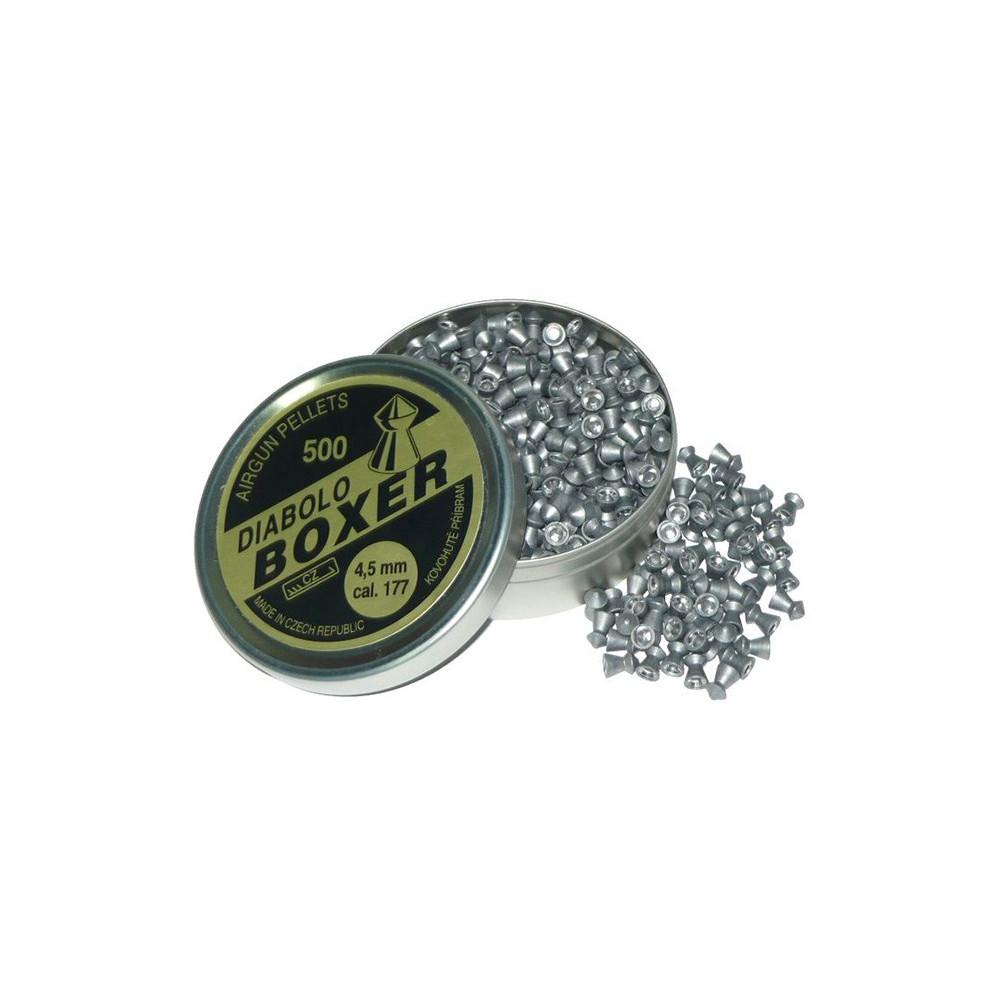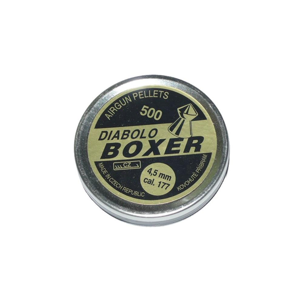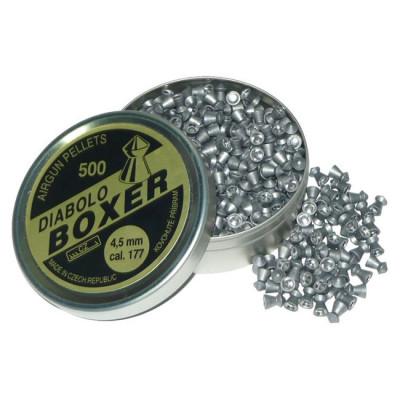 Diabolky BOXER 4,5mm jsou kvalitní diaboly určené pro vzduchovky s průměrem 4,5 mm. Tento produkt vyrábí Kovohutě Příbram a je dodáván v praktické klasické plechové krabičce, která obsahuje 500 kusů. Hrotová hlavička pelet zvyšuje jejich aerodynamické vlastnosti a poskytuje větší přesnost střelby. Tyto diaboly jsou ideální pro rekreační střelbu.