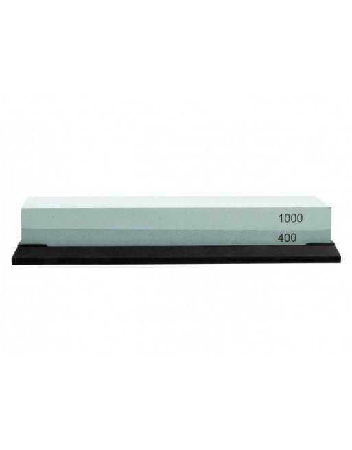 THE EDGE stone SHARP 400/1000 je oboustranný aluminový vodní kámen pro předostření a leštění. Kámen má dvě gradace, tedy jemnou 400 (tmavě šedá) určenou pro správné ostření a jemnou 1000 (světle šedá) pro leštění a rychlé ostření lehce tupých nástrojů. Gradace 400 a 1000 jsou skvělé pro broušení EDC, kuchyňských a outdoorových nožů. Velká plocha (180 × 60 mm) umožňuje pohodlně brousit na kámen velké nástroje, např. sekery, mačety.