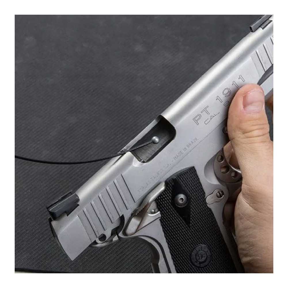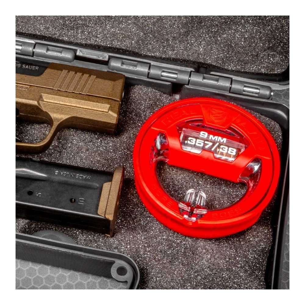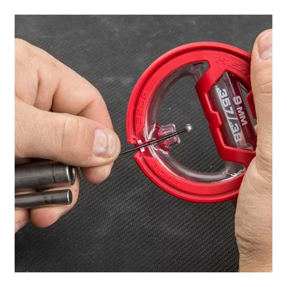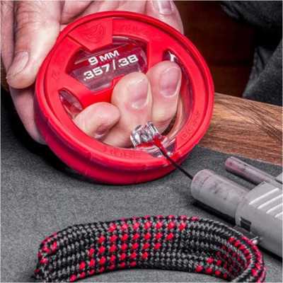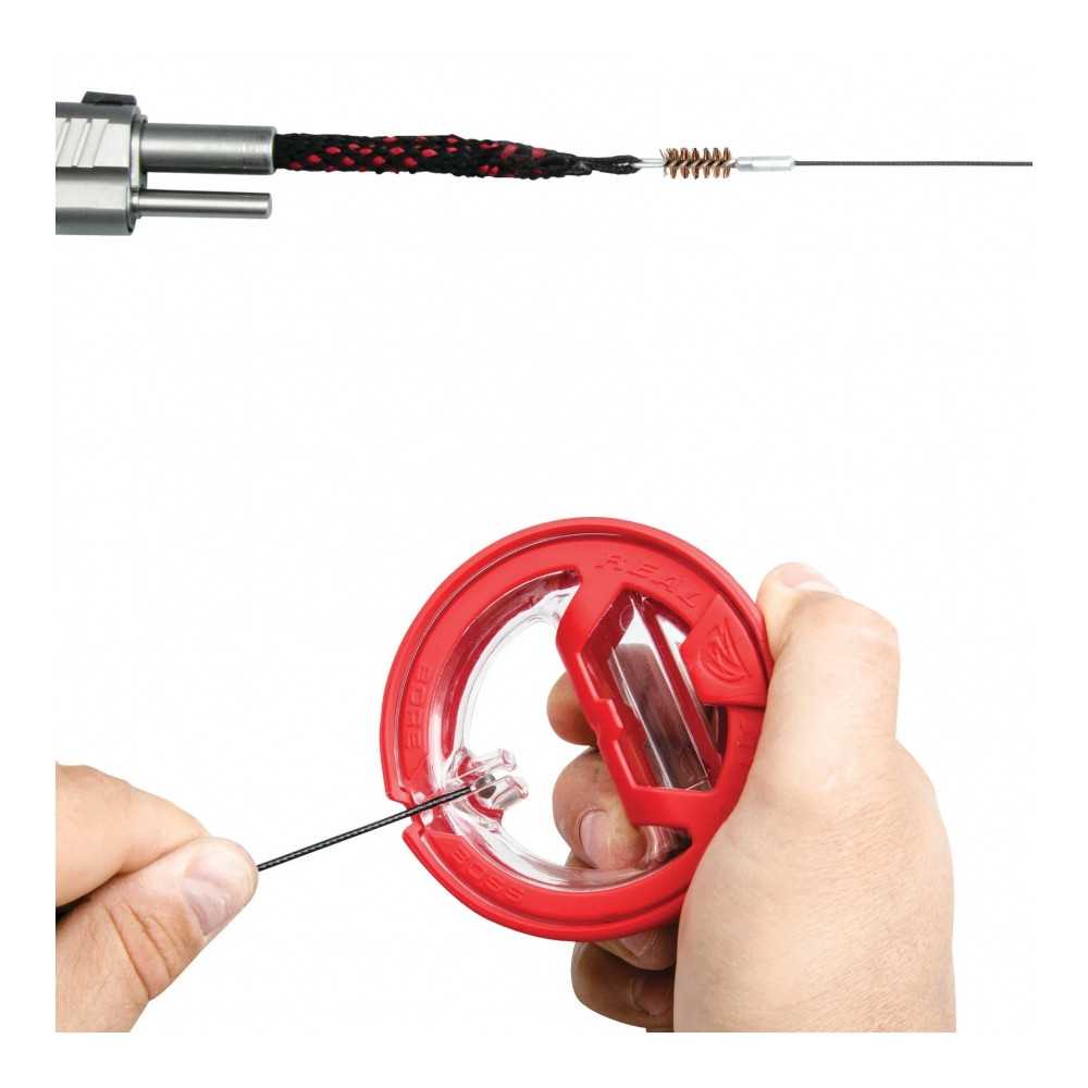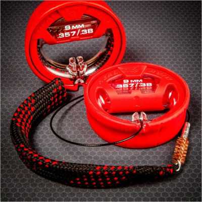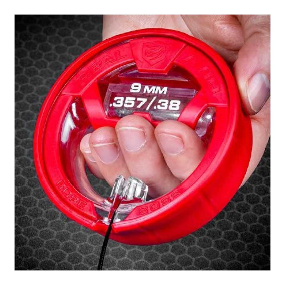 Čisticí šňůra Real Avid Bore Boss je nesmírně rychlý a pohodlný nástroj pro odstranění zbytků prachu a olova z hlavně zbraně. Tento model ukazuje nejvyšší úroveň ergonomie možnou pro tento druh nástroje – dvojité využití obalu zajišťuje nejen čisté a organizované skladování, ale také pohodlný úchop během čištění. Verze je určena pro zbraně v kalibrech .38, .357 a 9 mm.
