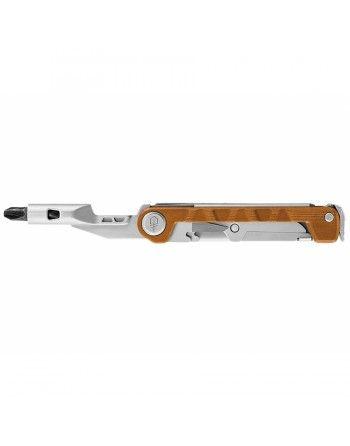 Gerber omezil počet nástrojů pouze na ty, které většina z nás potřebuje v každodenních situacích. Armbar má čepel z nerezové oceli s výklopnou čepelí.