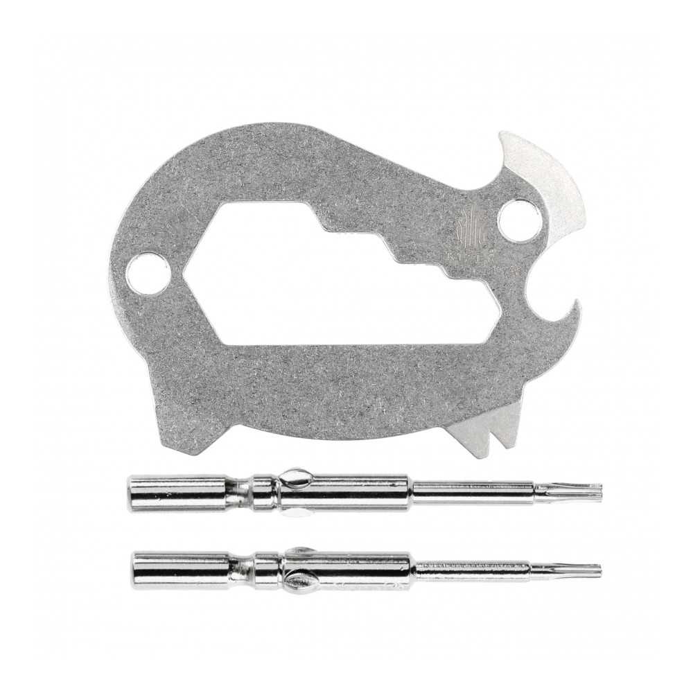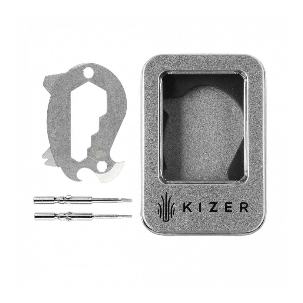 Multitool Kizer Peccary je vyroben z jednoho kusu nerezové oceli s povrchovou úpravou saténového vzhledu. Sada obsahuje bity, které lze snadno upevnit do těla multitoolu, což z něj dělá pohodlný a snadno použitelný šroubovák.
