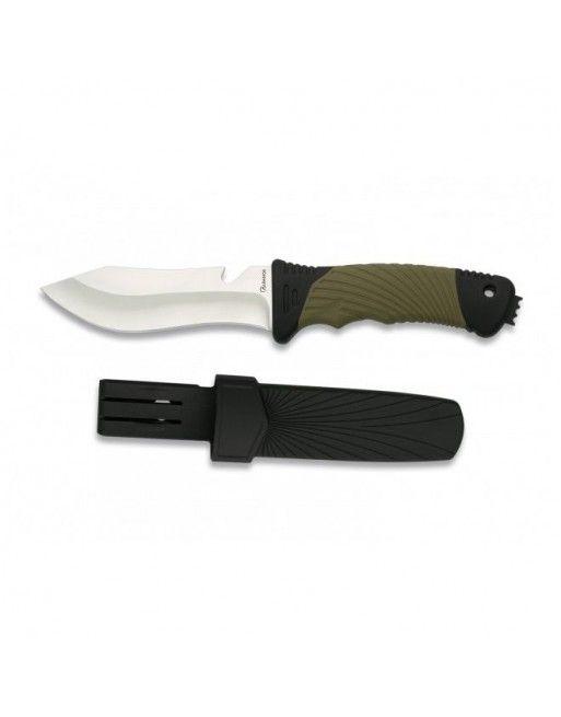 Taktický nůž Albainox 32340 je praktickým a spolehlivým doplňkem pro všechny milovníky outdoorových aktivit, příslušníky ozbrojených sil či nadšence do taktických nástrojů. S pevnou čepelí o délce 12 cm, vyrobenou z nerezové oceli, je tento nůž ideální pro různé úkony, ať už v přírodě nebo za náročných podmínek. Rukojeť z odolné kombinace ABS plastu a gumy je navržena s paprskovitou strukturou, což zajišťuje bezpečné držení a minimalizuje riziko vyklouznutí nože i za zhoršených pracovních podmínek. Na konci rukojeti je navíc oko pro provlečení šňůrky, což usnadňuje jeho uchycení a zajištění.