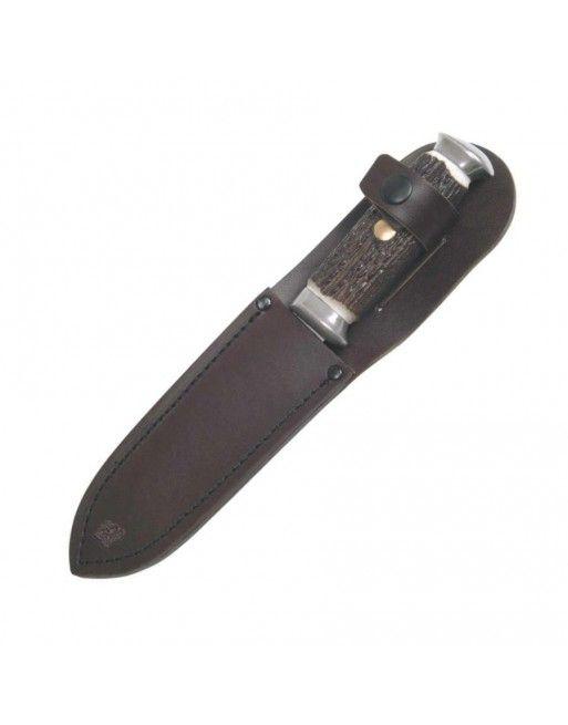 Nápis ZDAR LOVU. Materiál čepele: nerezová ocel 425. Materiál střenky: plast .Délka výrobku: 235mm. Délka čepele: 130mm. Šířka čepele: 35mm. Hmotnost výrobku: 141g. Pouzdro: včetně koženého pouzdra.