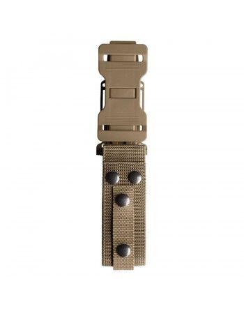 K příslušenství nože dále patří samosvorná plastová pochva, úzký a široký nylonový popruh s druky a plastová montážní destička se zajišťovací vidlicí. Nůž lze nosit třemi způsoby: