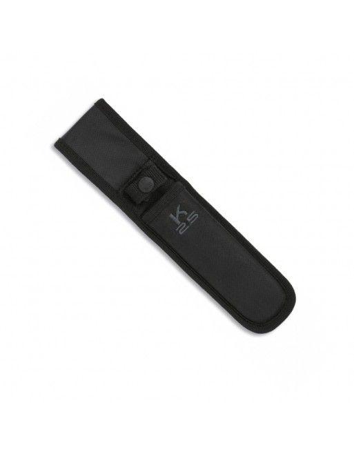 Součástí balení je černé pouzdro, ve kterém je nůž zajištěný pomocí pásku s drukem.