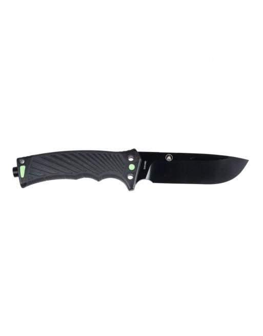 Nůž je vybaven širokou a pevnou čepelí o délce 113 mm, vyrobenou z nerezové oceli 8Cr13MoV s tvrdostí 57–58 HRC. Tato ocel nabízí výborný kompromis mezi tvrdostí, odolností proti korozi a snadným broušením, což je důležité při používání v terénu.