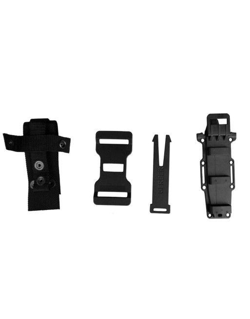 K příslušenství nože dále patří samosvorná plastová pochva, úzký a široký nylonový popruh s druky a plastová montážní destička se zajišťovací vidlicí. Nůž lze nosit třemi způsoby: