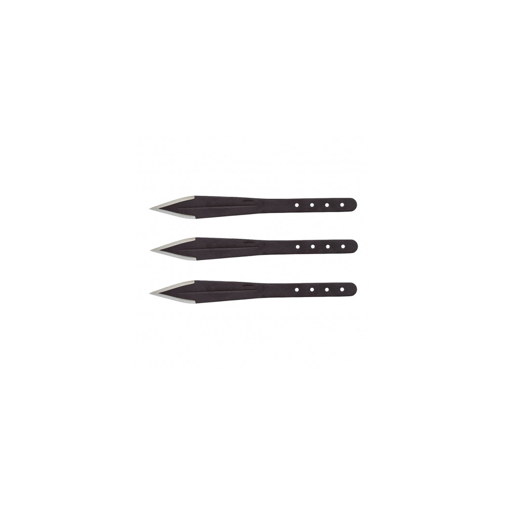 Nože mají štíhlou čepel s oboustranným ostřím a silným bodem, což zajišťuje výbornou penetraci a usnadňuje zasazení nožů do cíle. Minimalistická full-tang konstrukce zvyšuje odolnost nožů proti mechanickému poškození, což je klíčové pro předměty vystavené neustálým nárazům. Díky povrchové úpravě práškovým lakem je ocelový povrch matný a protiskluzový, což zlepšuje uchopení nože.
