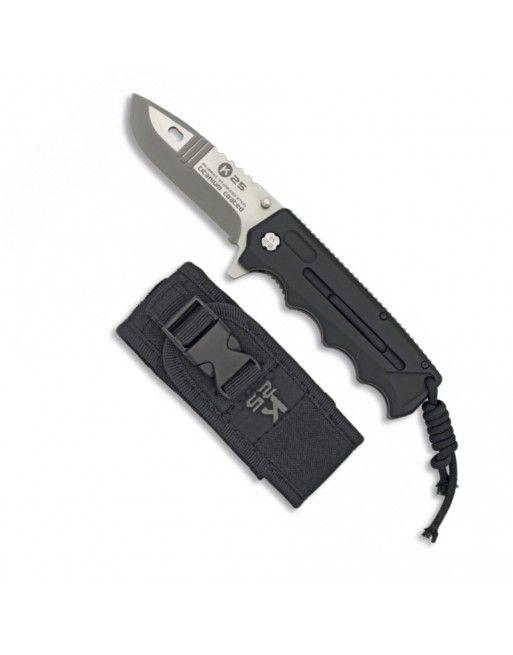 Zajímavý nůž značky K25 s hladkým ostřím. Čepel je vyrobena z nerezové oceli s titanovým povlakem pro lepší vlastnosti. Na rukojeť byl použitý materiál SFL. Dodáváno s nylonovým pouzdrem a paracordem.