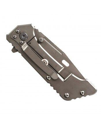 Robustní zavírací nůž se špičkou typu TANTO. Čepel je vyrobená z nerezové oceli, disponuje hladkým výbrusem, oboustranným kolíčkem pro snadné otevírání a je pokryta vrstvou titanu, který zlepšuje odolnost vůči korozi. V otevřeném stavu je fixována pojistkou frame lock. Samozřejmostí je opaskový klip a flipper.