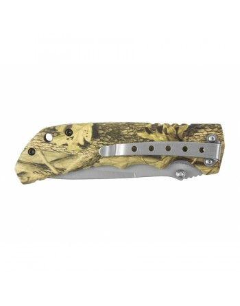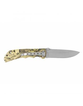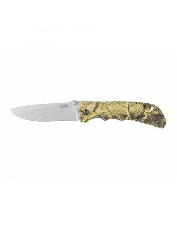 Zavírací nůž v loveckém designu. Střenky jsou pokryty kamufláží realtree. Rukojeť je spojena s konstrukcí nože pomocí imbusových šroubků. Ocelová čepel spear point připomíná svým tvarem dýku. Rozevření nože je velice rychlé a pohodlné díky integrované pružině. V otevřené pozici je čepel zajištěna