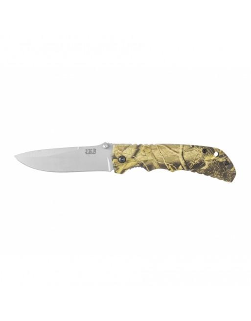 Zavírací nůž Joker JKR528 s ostřím z nerezové oceli a střenkami v kamufláži realtree. Čepel je vybavena pojistkou liner lock. V designu nože je vidět patrný vliv italských nožů. Čepel spear point připomíná svým tvarem dýku, oproti ní však má na jedné straně klasické ostří. Hřbet je zakončen klasickou hranou.