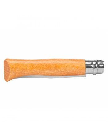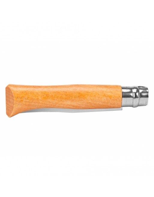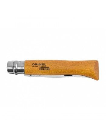 Čepel nože je z uhlíkové oceli. Uhlíková ocel Opinel je nelegovaná ocel s vysokým obsahem uhlíku, která po tepelném zpracování získává vysokou tvrdost, která zaručuje dokonalé držení ostří a velkou odolnost proti opotřebení a snadné opětovné naostření. Uhlíková ocel s nízkou odolností proti korozi působením vlhkosti však vyžaduje preventivní opatření: nenechávejte nůž ve vlhkém prostředí, po použití otřete čepel mastným hadříkem a namažte jej olejem .