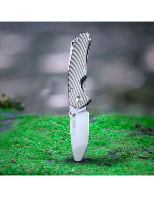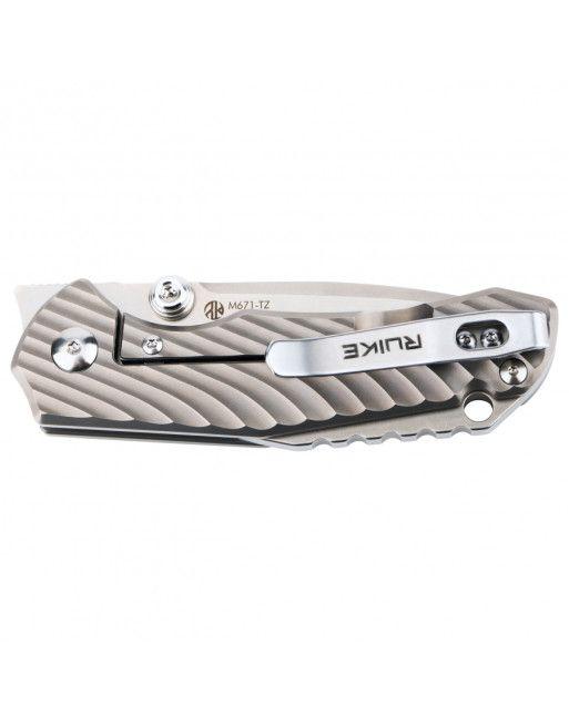 Prémiová verze mimořádně oblíbeného modelu zavíracího nože Ruike využívající ve své konstrukci vysoce kvalitní ocel 154CM a titan TC-4. Exotický profil čepele nože Ruike M671-TZ, kombinující vlastnosti tanto a droppoint, zaručuje vynikající řezné vlastnosti. Frézovaná titanová textura dodává struktuře eleganci a pozitivně ovlivňuje úchop. Díky kompaktnímu tvaru je nůž skvělou volbou pro každodenní použití.