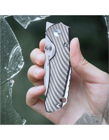 Rukojeť nože Ruike M671-TZ je vyrobena z extrémně odolného a lehkého titanu TC-4. Tento materiál se také vyznačuje vysokou odolností proti korozi a je skutečným ideálem, pokud jde o použití v EDC nožích. Texturovaný povrch poskytuje uživateli bezpečný úchop i v mokré ruce. Odolný rámový zámek zaručuje uživateli bezpečnost a spolehlivost. Důležité je, že u nožů s titanovou rukojetí dostal zámek ocelovou vložku, která snižuje opotřebení zámku. Prvek je vyměnitelný díky montáži na torx šroub.