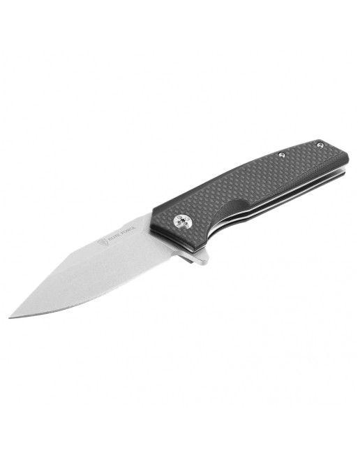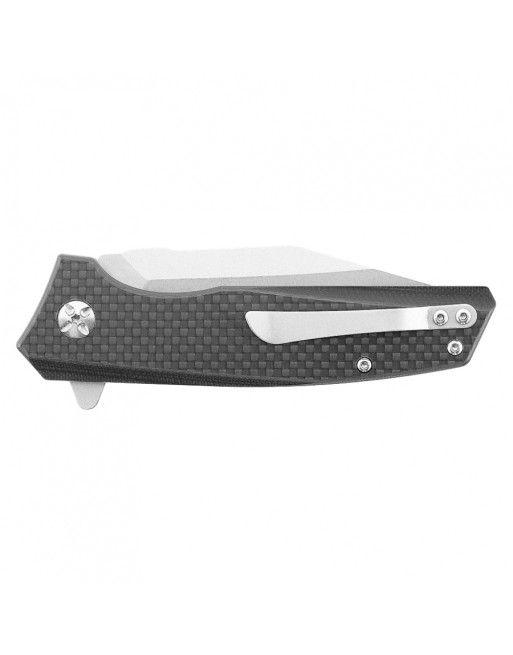 Nůž má rukojeť z laminátu G10 a uhlíkových vláken, což zaručuje vynikající přilnavost a pohodlí při používání nože. Rukojeť má profilovaný tvar s konturovanými výřezy, což zlepšuje úchop nože a pohodlí při práci.