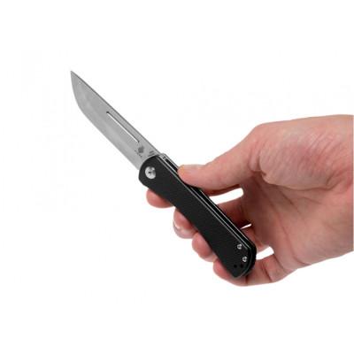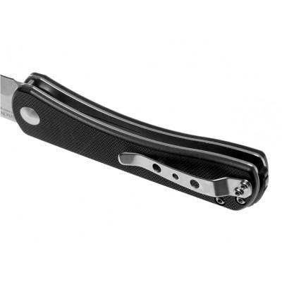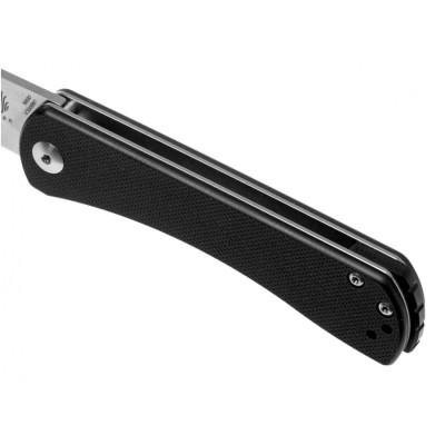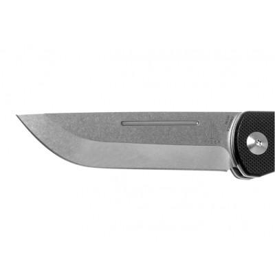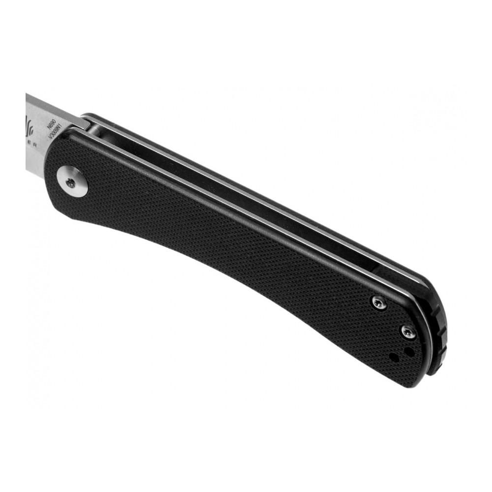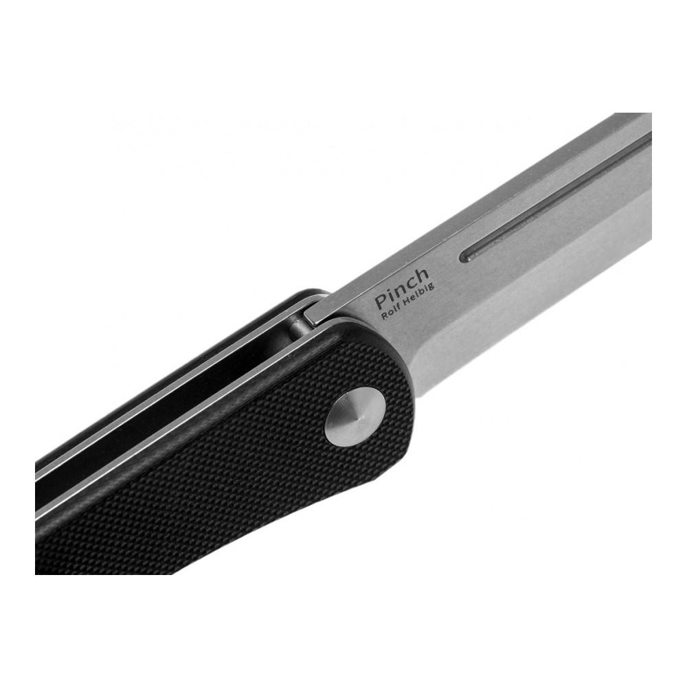 Rukojeť je vyrobena z černého laminátu G-10 s jemně drsnou texturou, která zajišťuje dobrou přilnavost a stabilní úchop.