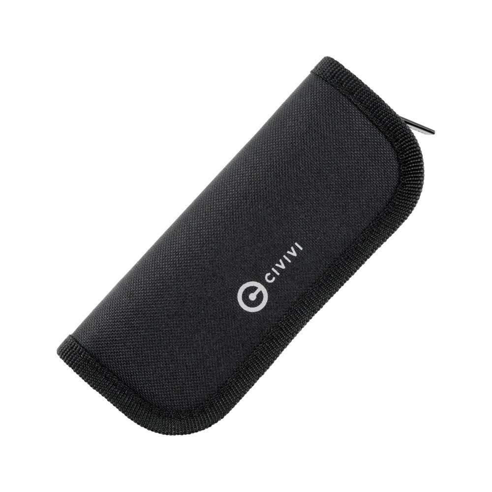 Další funkce: Obsahuje otvor pro připevnění šňůrky nebo lana a malé logo značky. Navíc, Civivi Elementum je vybaven oboustranným klipsem pro snadné nošení a dodává se s nylonovým pouzdrem a mikrovláknovou utěrkou pro údržbu.