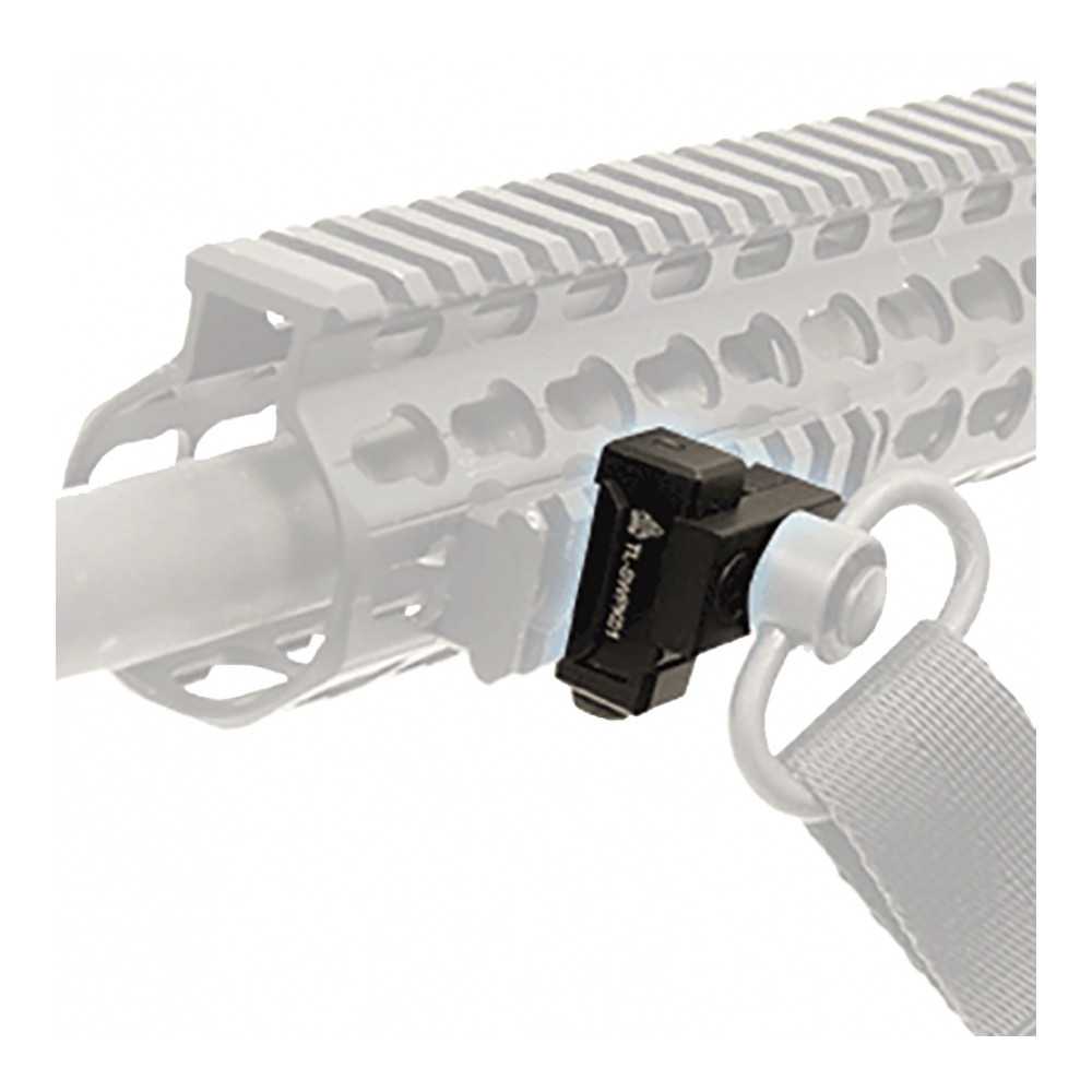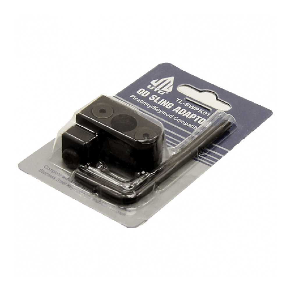 Tento adaptér je navržen k montáži na montážní lišty Picatinny a je vybaven odnímatelným modulem kompatibilním se standardními KeyMod sloty. QD (Quick Detach) adaptér je uzpůsoben pro použití s rychloupínacími otočnými poutky o průměru 0,37 palce. Taktické poutko pro zavěšení není součástí balení.