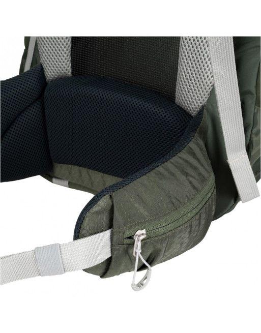 Prostorná hlavní komora má dva přístupy – klasický přístup shora dolů a další umístěný ve spodní části batohu. Díky tomu se snadno dostaneme ke každému prvku našeho vybavení, aniž bychom museli vybalovat celý obsah. Batoh Alpinus Zarand II je navíc vybaven síťovanými kapsami po stranách komory, které nám umožní hygienicky přepravovat mokré nebo jen špinavé kusy oblečení. Pozoruhodné jsou také kapsy na zip našité na bederním pásu, díky kterým budete mít nejdůležitější doplňky jako kompas nebo GPS vždy po ruce