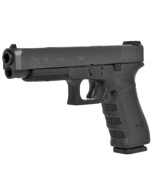 Glock 34. Sportovní model, který je standardně osazen stojinou spouště 2,0 kg, delším záchytem závěru, delším vypouštěčem zásobníku a seřiditelným (mikrometrickým) hledím.