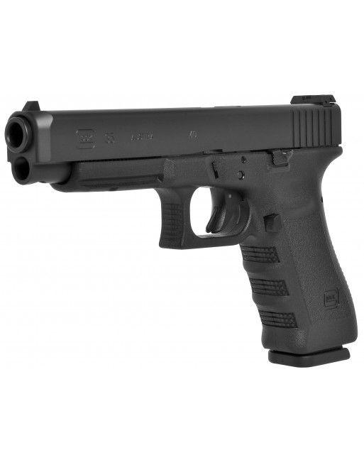 Glock 35. Sportovní provedení polymerové pistole Glock určené pro terčovou střelbu. Sportovní model, který je standardně osazen stojinou spouště 2,0 kg, delším záchytem závěru, delším vypouštěčem zásobníku a seřiditelným (mikrometrickým) hledím.