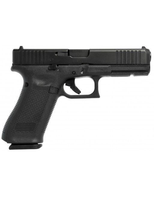 Glock 17 Gen5 FS. Nová FS varianta pistole Glock 17 Gen5. Pistole má navíc přední drážky a odstraněný výřez ve spodní části rukojeti. Pistole GLOCK 17 Gen5 má oproti předchozím generacím následující prvky/vlastnosti: Oboustranný záchyt závěru GLOCK MARKSMAN BARREL - Hlaveň s inovovaným vývrtem Nová povrchová úprava závěru a hlavně (nDLC) výhradně na pistolích Gen5 Na rámu bylo odstraněno tvarování pro prsty Rozšířená spodní část zásobníkové šachty pro pohodlnější vkládání zásobníku GLOCK FS = Front serrations! Přední drážky závěru (FS) zlepšují možnosti manipulace pistolí Glock. Díky drážkám můžete snadno provádět fast press check před a po střelbě.