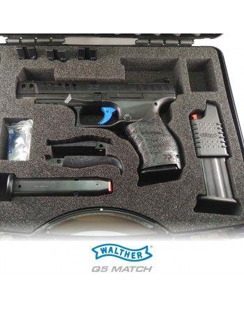 Pistole Walther Q5 Match je dodávána se třemi zásobníky a na 15 ran, třemi adaptéry a klíčem pro výměnu adaptérů na zaměřovače, výměnnými hřbety pro úpravu obvodu rukojeti a samonabíjecí pomůckou.