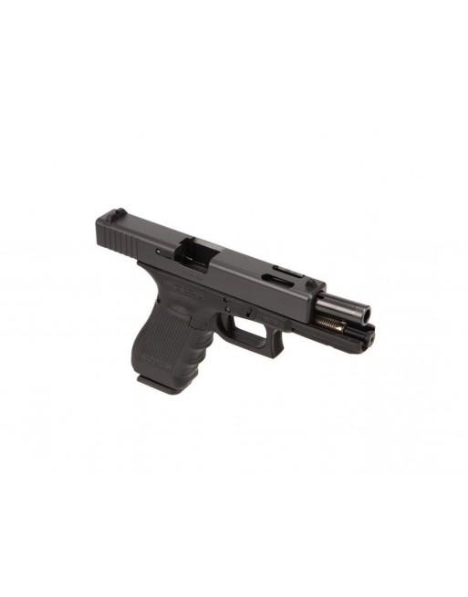 Samonabíjecí pistole Glock 17 C Gen4. Používá se jako služební zbraň a jako zbraň pro akční střelbu. Pistole Glock Gen4 nově obsahují systém výměnných gripů. Varianta s úsťovým kompenzátorem.