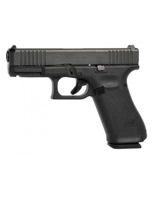 GLOCK 45 je nejnovější přírustek do rodiny pistolí GLOCK. Konstrukčně vychází z designu použitého při vývoji vojenské verze (G19X), zohledňuje zkušenosti uživatelů a požadavky státních ozbrojených složek z celého světa. G45 je ráže 9x19 mm a zařazujeme ji do řady COMPACT CROSSOVER (velikost rámu STANDARD a zároveň velikost závěru COMPACT).