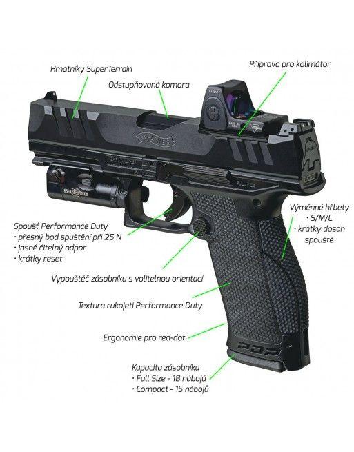 modely PDP Compact délkou prakticky kopírují kratší rukojeť pistolí Walther PPQ a pojmou zásobník na 15 nábojů.