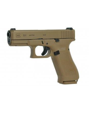 Pistole částečně vychází z G19 MHS (Modular Handgun System), který se spolu se SIG P320 účastnil tenderu na novou služební pistoli pro U.S. Army. Od armádní verze se liší pouze absencí oboustranné manuální pojistky na rámu. Glock 19X má všechny prvky Gen 5 – tj. hlaveň s novým vývrtem, oboustranné ovládání záchytu závěru, přepracovaný spoušťový mechanizmus, 2,25kg stojinu spouště, jiný zápalník a pojistku blokace zápalníku atd. Zároveň má ale jiný tvar zásobníkové šachty. Rám nemá vybrání na prsty (stejně jako Gen 5) ale chybí otvor v přední části pro prodlouženou botku zásobníku. Šachta také není ve spodní části rozšířena jako u standardních Gen 5. Místo toho je rám protažen dolů kvůli střelbě v taktických rukavicích. Vzhledem k absenci otvoru a protažení v přední části v pistoli nelze použít Gen 5 zásobníky. Všechny ostatní generace zásobníků jsou však kompatibilní. Rám má také odnímatelné očko na pojistné lanko (lanyard). Pistole jsou osazeny tritiovými mířidly a jsou dodávány se třemi zásobníky – 1x na 17 ran plus 2x 17+2 ran s botkou. Pistole mají takové novou povrchovou úpravu (nPVD slide coating / Physical Vapour Deposition) v pískové barvě. Barva je aplikována pomocí naprašování a vakuového napařování. Oproti povrchové úpravě teniferací na předchozích generacích pistolí Glock, při nanášením povrchové úpravy odpařením z pevné fáze vzniká ultra tenká kombinace 2μm vrstev, které mají - vysokou tvrdostí, vysokou kluznost (dochází tak menšímu tření jednotlivých dílů) dobrou odolností vůči otěru a vysokým teplotám (až 750°C), a také dobrou odolnost proti korozi a kyselinám.