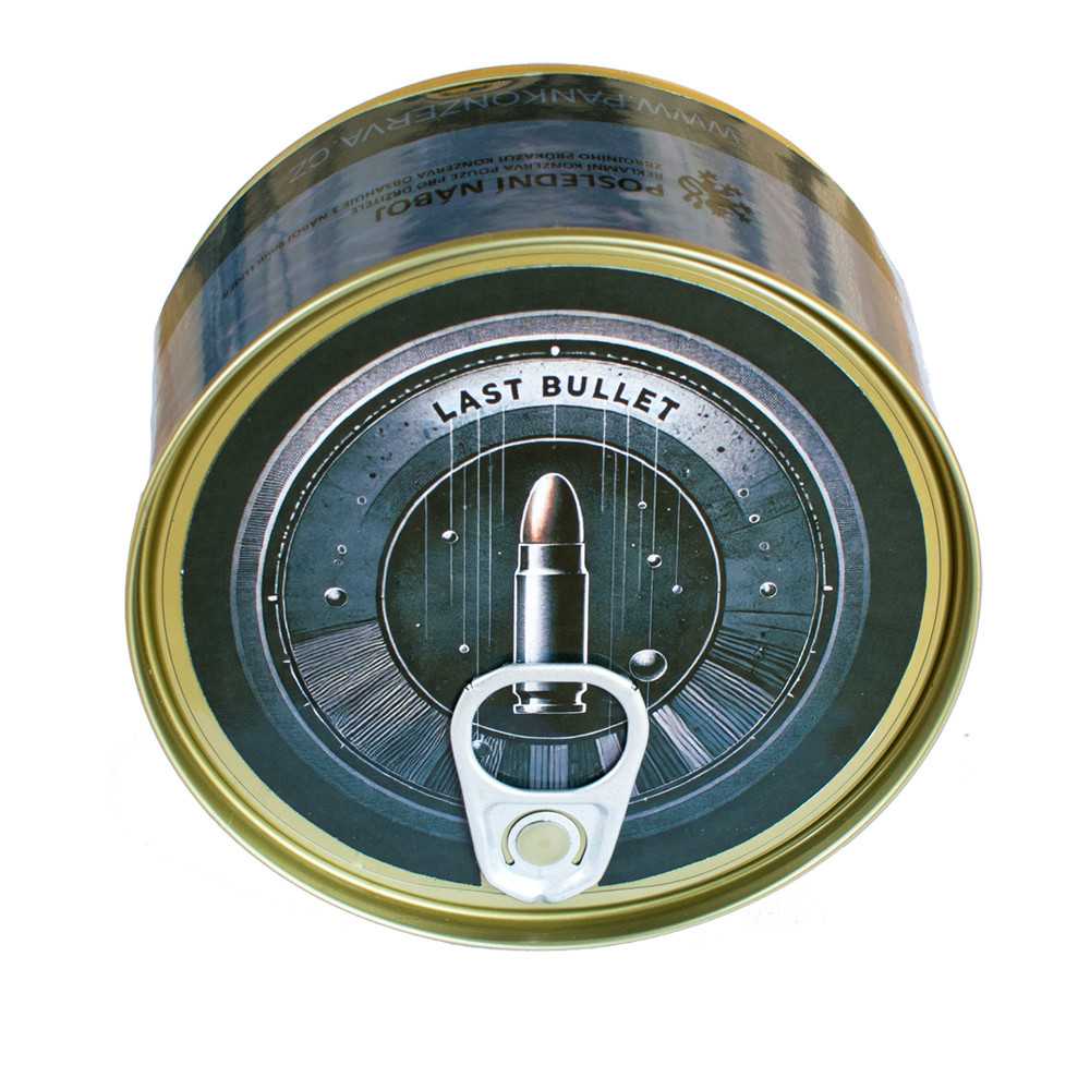 Konzerva s posledním nábojem je nejen zábavná, ale také stylová. Je zabalena s péčí a důrazem na detail, takže se skvěle hodí jako dárek k narozeninám, na Vánoce nebo jen tak pro radost. Ať už ji daruješ nebo si ji necháš jako kuriozitu, vždy přinese úsměv na tvář.