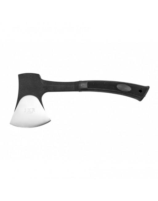 Vysoce kvalitní sekera španělské značky Joker, známé po celém světě svými vynikajícími produkty. Je to odolná a pevná sekera s pevnou čepelí. Dokonale vyrobeno ze silné a tlusté nerezové oceli. Jeho největší předností je pogumovaná rukojeť, díky které sekerka drží pevně v ruce. Obal je vyroben z polymeru, zapínání na západku, s možností připnutí na opasek.