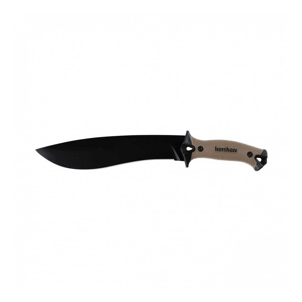 Kershaw Camp 10 TAN je robustní mačeta s čepelí z uhlíkové oceli 65Mn a konstrukcí full tang. Díky ergonomické pogumované rukojeti a výkonné čepeli je ideální pro prosekávání vegetace, práci v lese, kempování i survival.