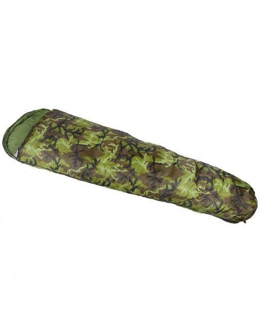Třísezonní spacák s dvouvrstvým zateplením v českém maskovaní vz.95 les. Rozměry: 220 x 50 x 70 cm, rozměry balení: 40 x 25 cm, hmotnost: 1,95 kg. Materiál: 100 % polyester, podšívka: 100 % bavlna, zateplení: 2x225 g/m2, polyesterové duté vlákno