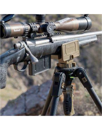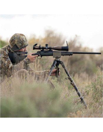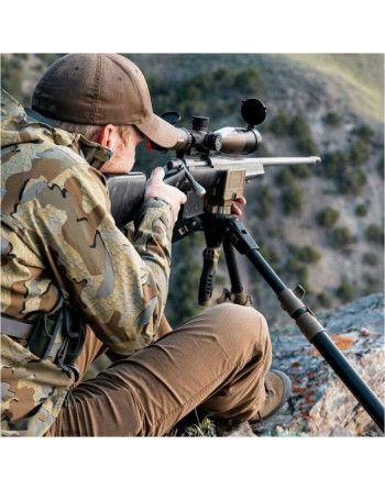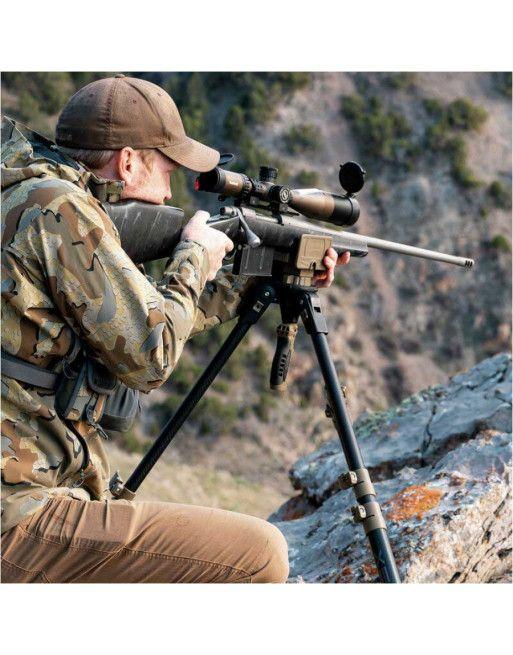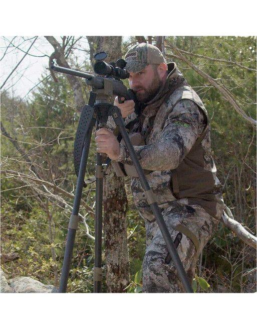 Stativ Primos Trigger Stick Apex se vyznačuje mimořádnou odolností a omezenou hmotností vlastní konstrukce. To bylo dosaženo díky kombinaci hliníkové kostry a vláknové kompozitové osnovy. Díky třídílné konstrukci nohou má stativ velmi široký rozsah nastavení výšky od 93 do 157 cm - což umožňuje pohodlnou střelbu z jak stojící, tak sedící pozice. V tomto druhém případě se hodí možnost zvýšení úhlu nohou, což nám umožní výrazné snížení výšky. Lze také upravit rozestavení vidlice, což nám umožní plynulé použití jak s úzkými loveckými puškami, tak s precizními puškami s širokými základnami.
