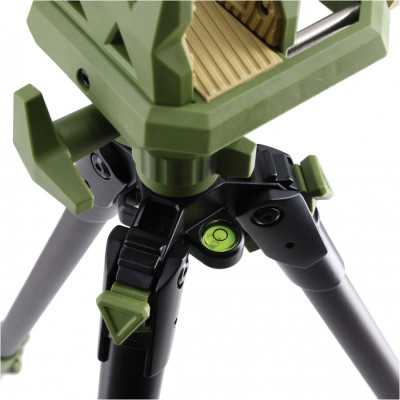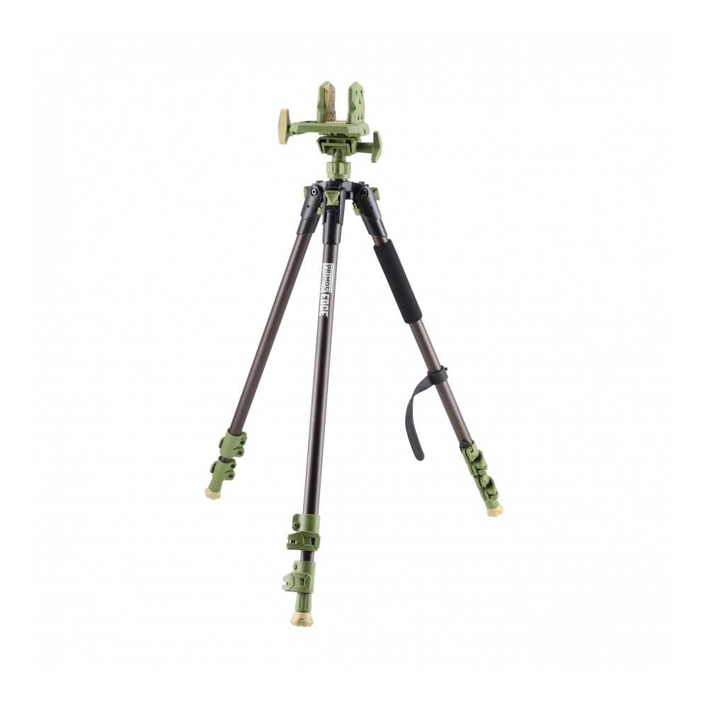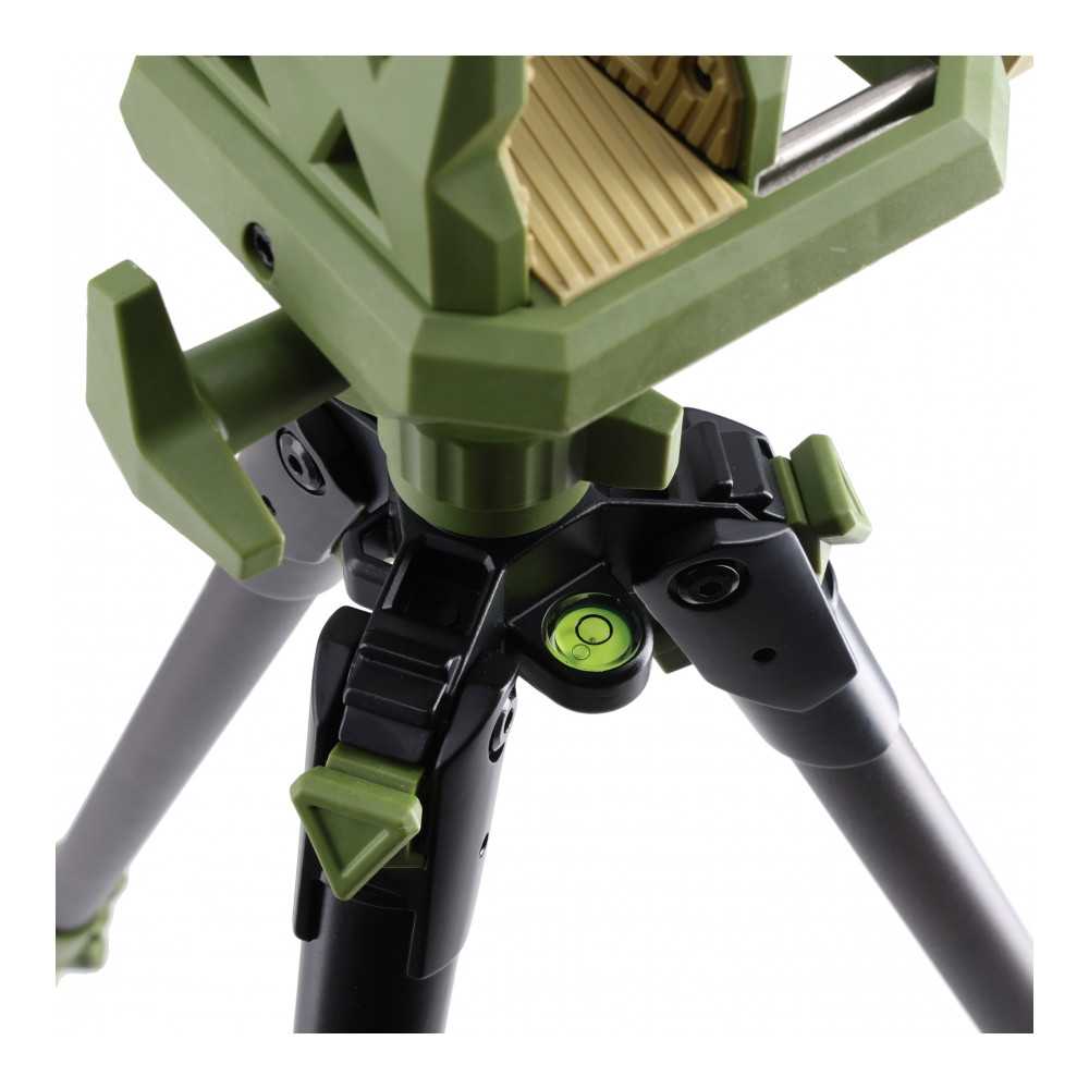 Díky rozsahu výšky 20–170 cm je vhodný pro střelbu vsedě, vkleče i vstoje; trojnožka stojí samostatně a nastaví se rychle i v nerovném terénu. Složený má délku 838 mm — pohodlný pro transport v batohu nebo v autě.