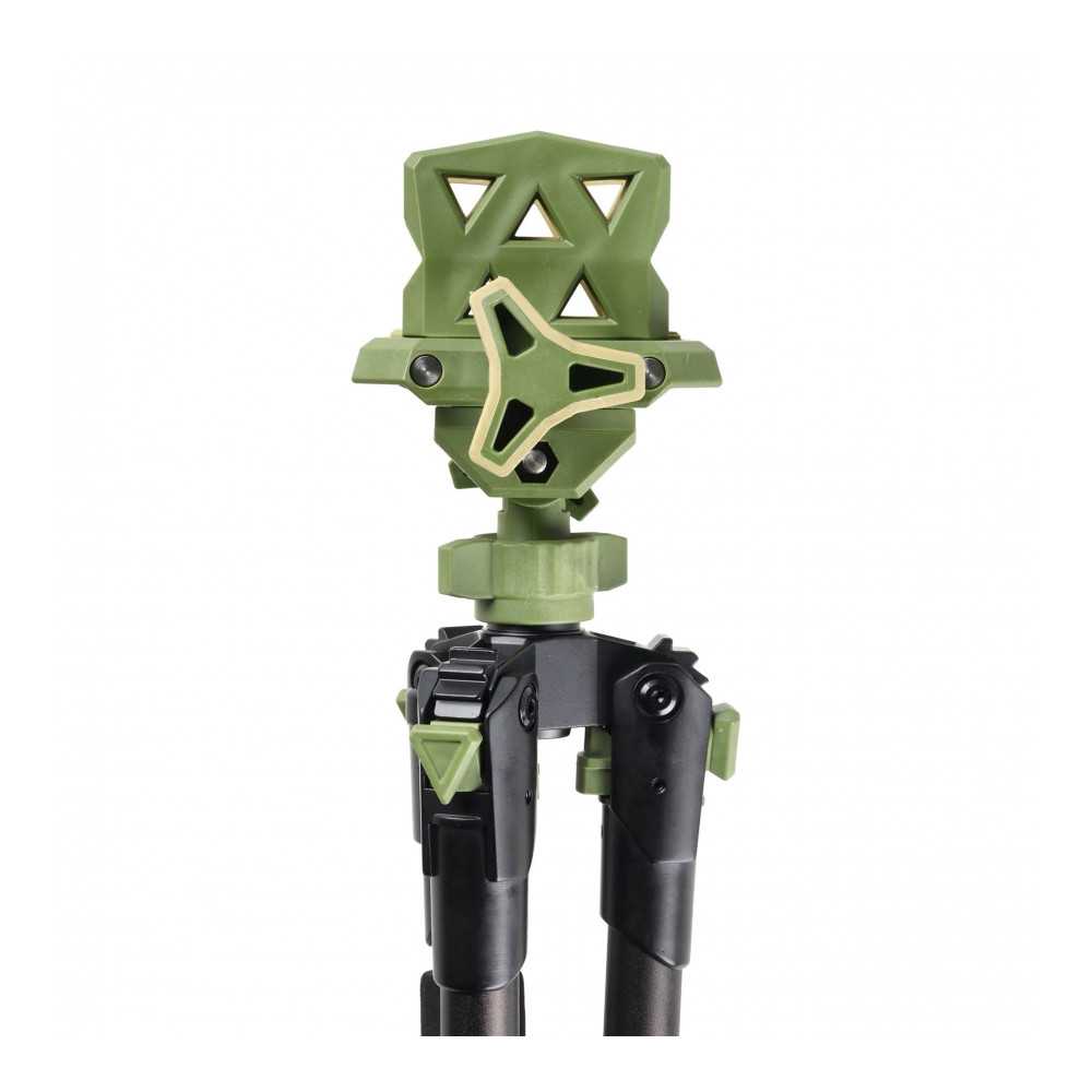 Primos THE EDGE kombinuje pevnost a mobilitu — rám z odolného hliníku a nastavitelné teleskopické nohy poskytují stabilní oporu bez zbytečné váhy (2,6 kg). Magna Switch hlavice se měkkými gumovými lamelami pevně fixuje různé tvarové osady zbraní, aniž by je poškrábala nebo odtláčela.