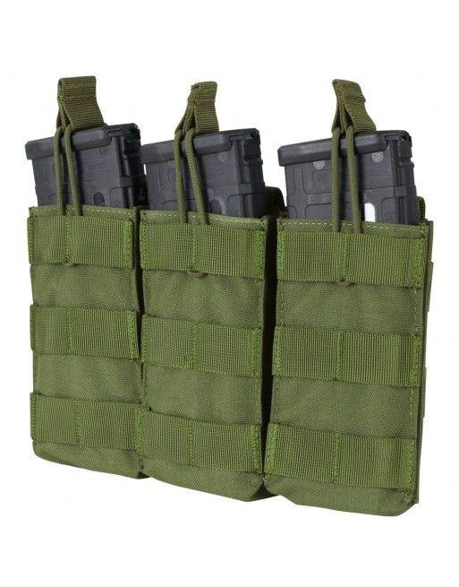 Trojitá sumka na 3 zásobníky pro M16/M4, pro připojení k MOLLE systému. Pouzdra jsou svrchu otevřená, zásobníky se zajišťují pouze elastickou nastavitelnou šňůrkou.